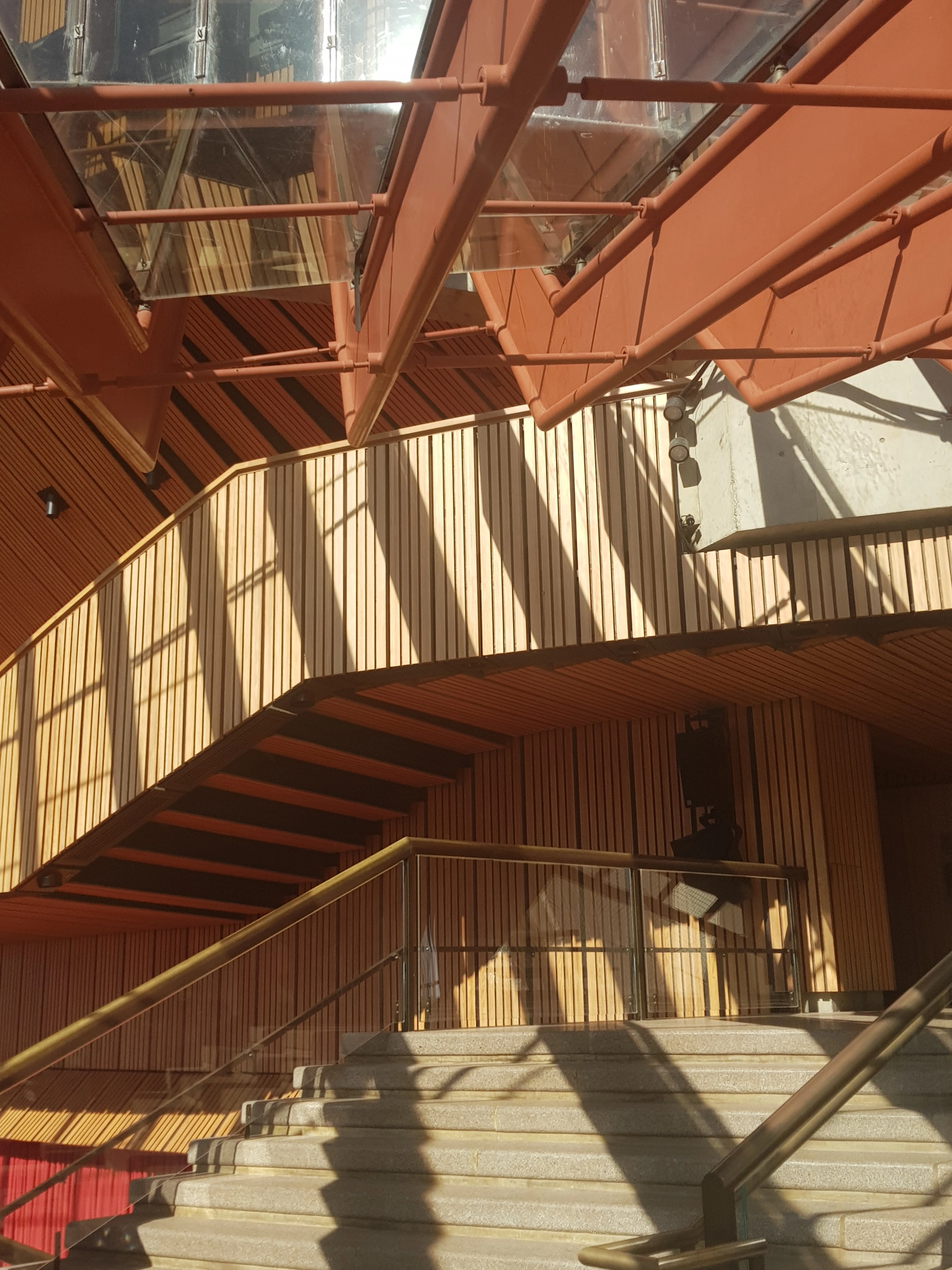 Then we were thrilled, delighted and completely overcome to be treated to a visit into the Orchestral hall where the Australian National Orchestra were warming up. There was the grand piano, the harp, all the wind instruments and of course the triangle (my personal favourite and one I could become accomplished with) all playing, with the conductor flapping about, as they do.